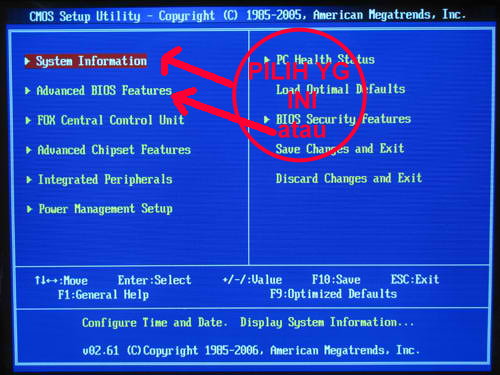 - Tekan “Del” makaandaakandiarahkanpada menu bios